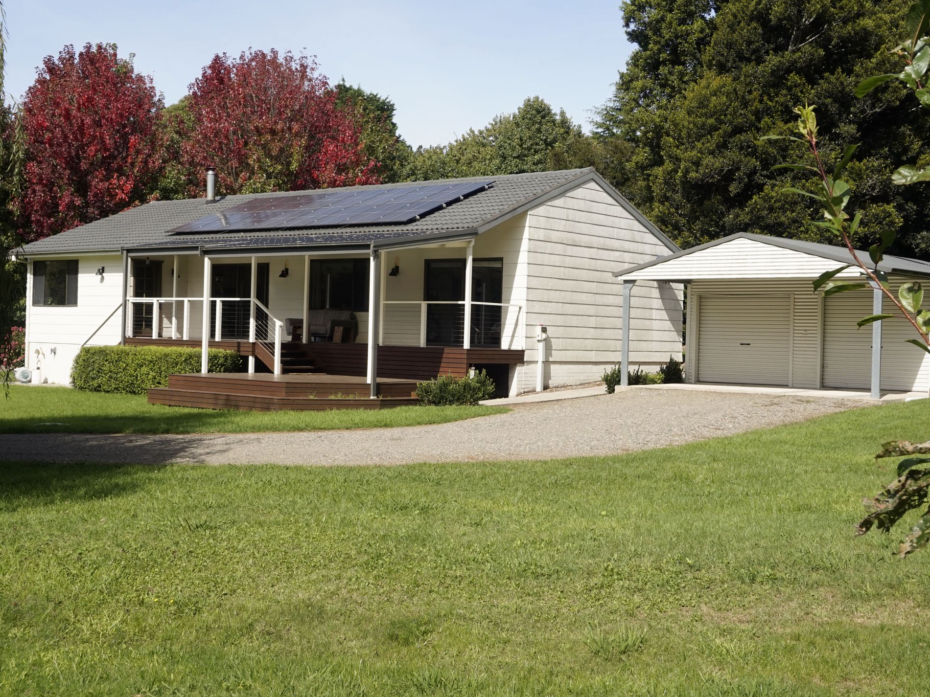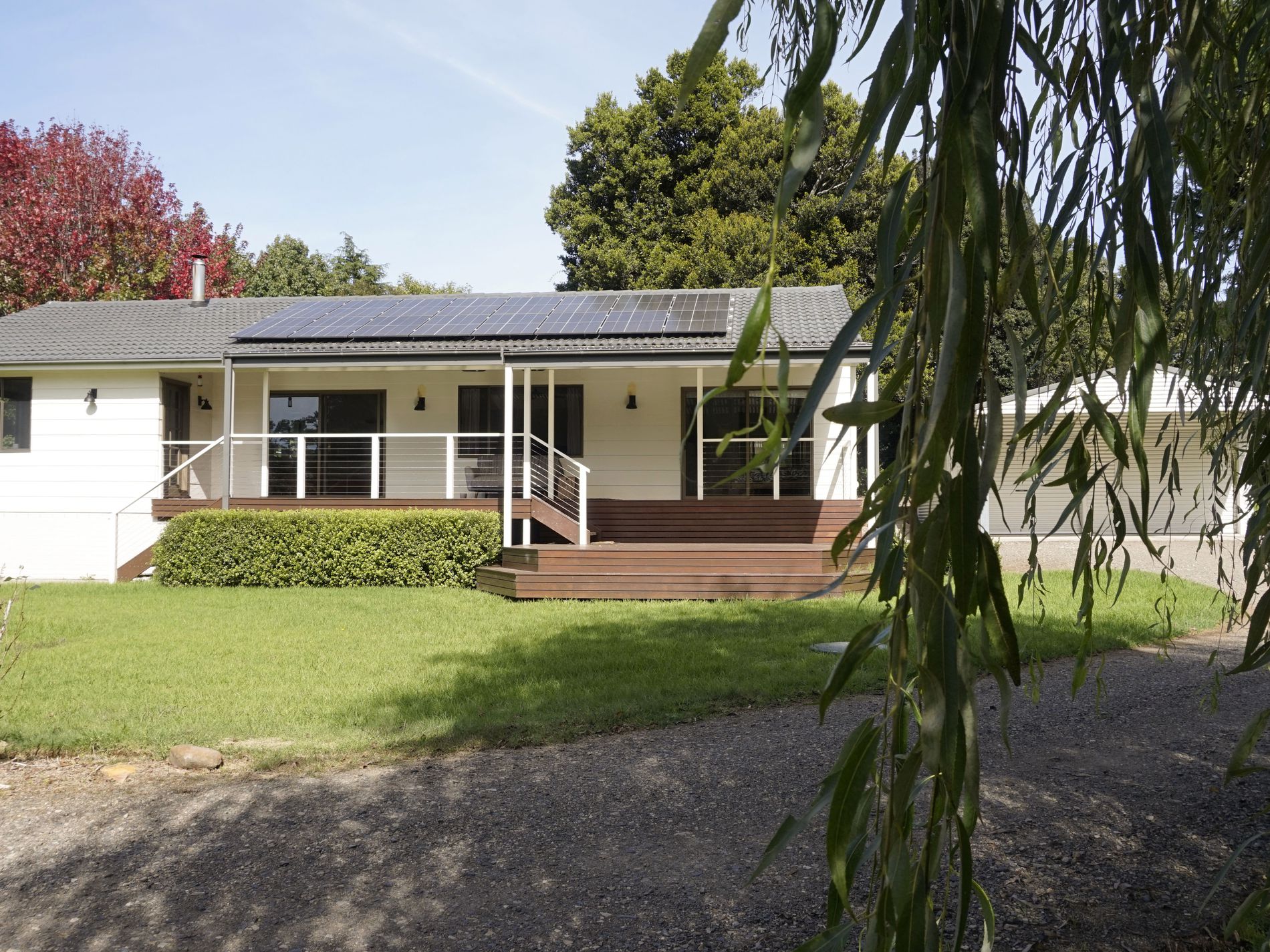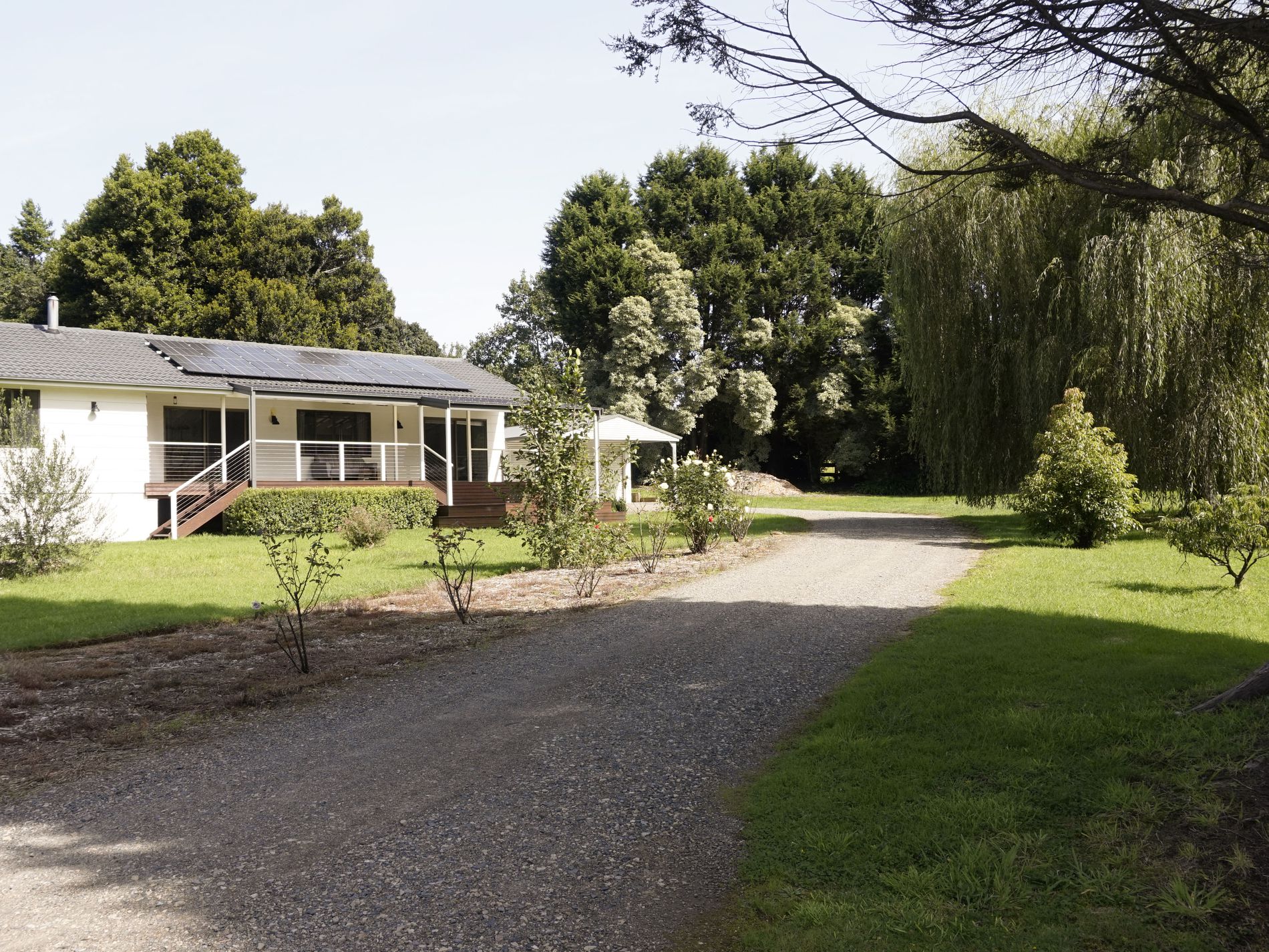 Located on the eastern edge and within walking distance of Robertson village amenities, this delightful home has much to offer. The noreast facing deck sits well back from the street and overlooks the expansive gardens. Flowering roses, a scattering of young fruit trees, and a splendid Weeping Willow that bends down to the timber bridge over the part time creek/easement, makes for a landscapers' canvas to add hedging if wanting more privacy.